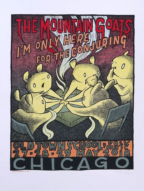 Tour poster for the May 2018 Old Town School of Folk Music dates. Created by Jay Ryan, https://thebirdmachine.com/.